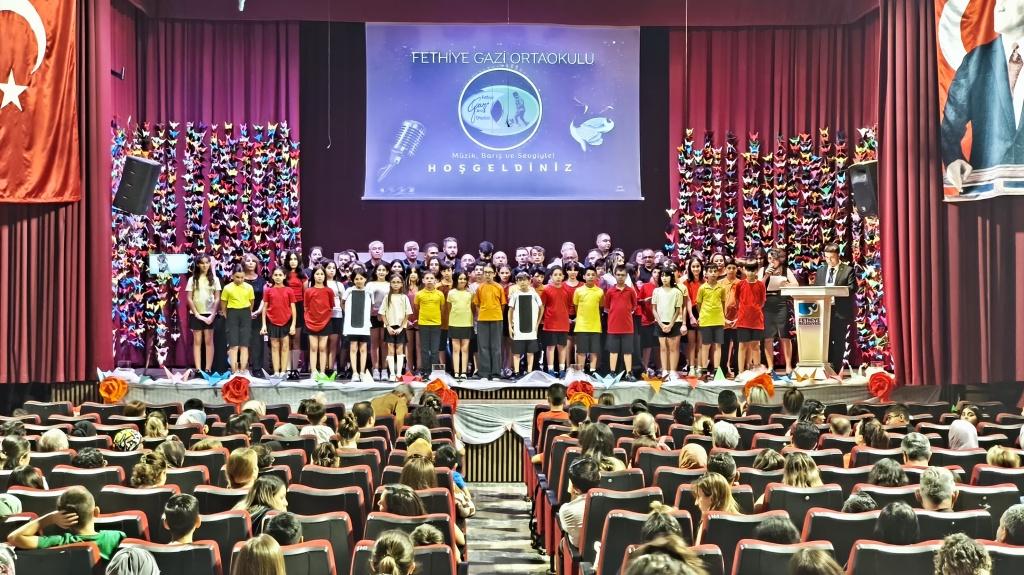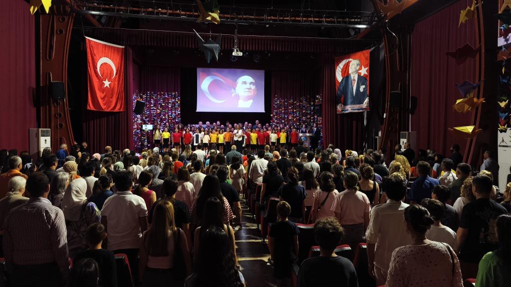 Okulumuz yıl sonu etkinlikleri kapsamında hazırladığımız ve öğrenci emeğini merkeze alan muhteşem bir müzikal gösteriye ev sahipliği yaptı. “Göğe Bakma Durağı” adını taşıyan gösteride, öğrencilerin kaleminden çıkan özgün hikâyeler, müzikle, şiirle ve sahne performanslarıyla izleyicilere sunuldu.