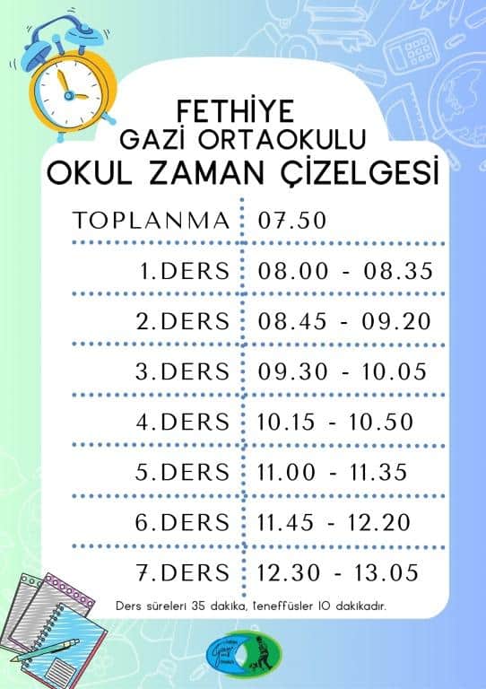 Fethiye Gazi Ortaokulu Zaman Çizelgesi